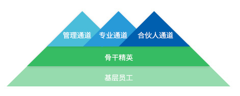 基層員工 → 骨干精英 → 管理通道、專業通道、合伙人通道